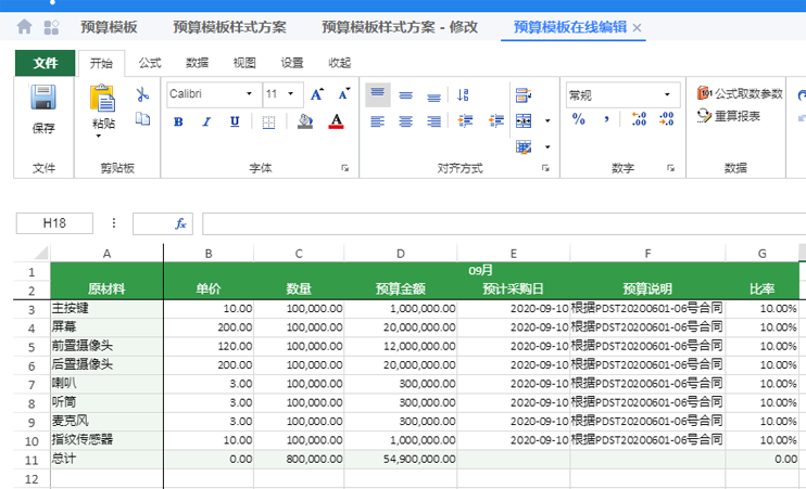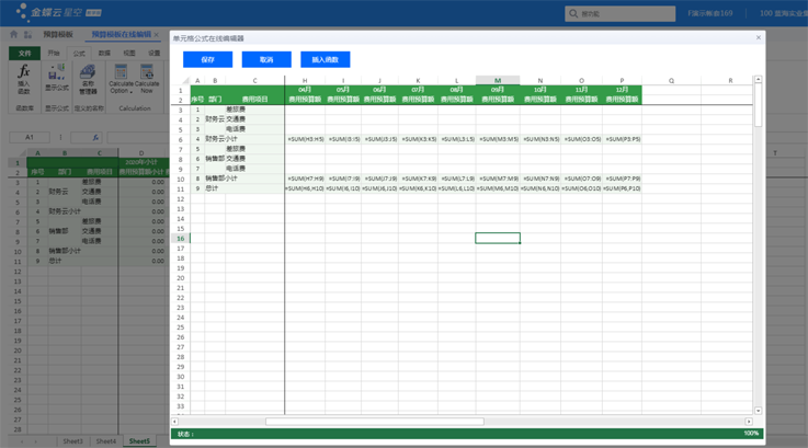 1.预算管理的在线报表编辑,基于葡萄城提供的Spread JS纯前端表格控件搭建。