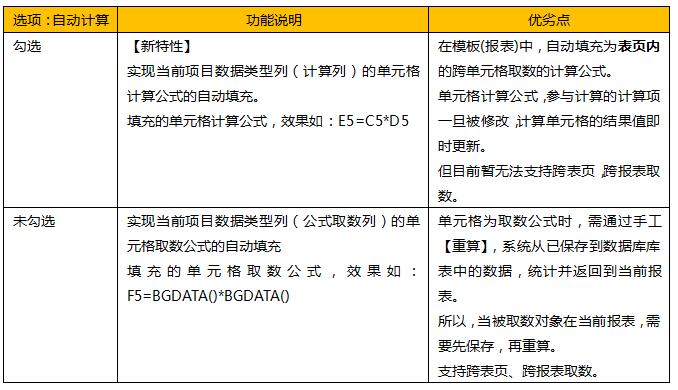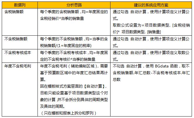 1) 表中,存在多个数据列为计算列,为简化模板定义的效率,保证每次维度值填充后,单元格计算公式自动更新,建议使用模板样式方案.项目数据类型的取数公式定义。