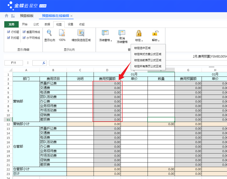 在预算表中,有些区域(列)仅仅只用于辅助计算/输出*终的预算结果。