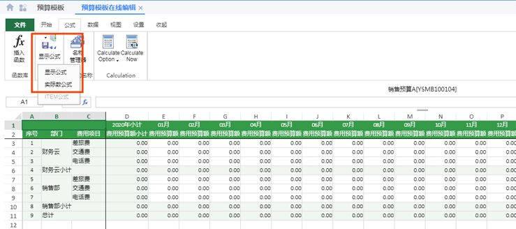 特性7:支持查看取数公式状态的切换(预算数取数公式/实际数报表取数公式)。帮助预算编制人员批量进行单元格取数公式的编辑。