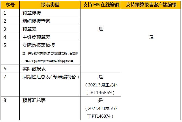 星空HTML5模式下,预算管理模块中各类报表类型,支持在线编辑的具体情况如下: